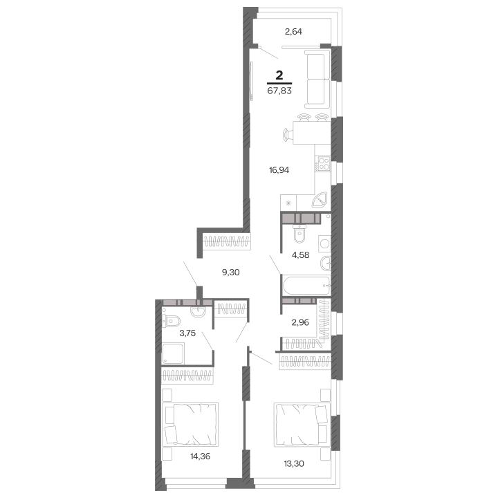 Продажа квартир через счета эскроу. Срок ввода комплекса в эксплуатацию — III квартал 2029 года, передача ключей запланирована до 31 марта 2030 года.