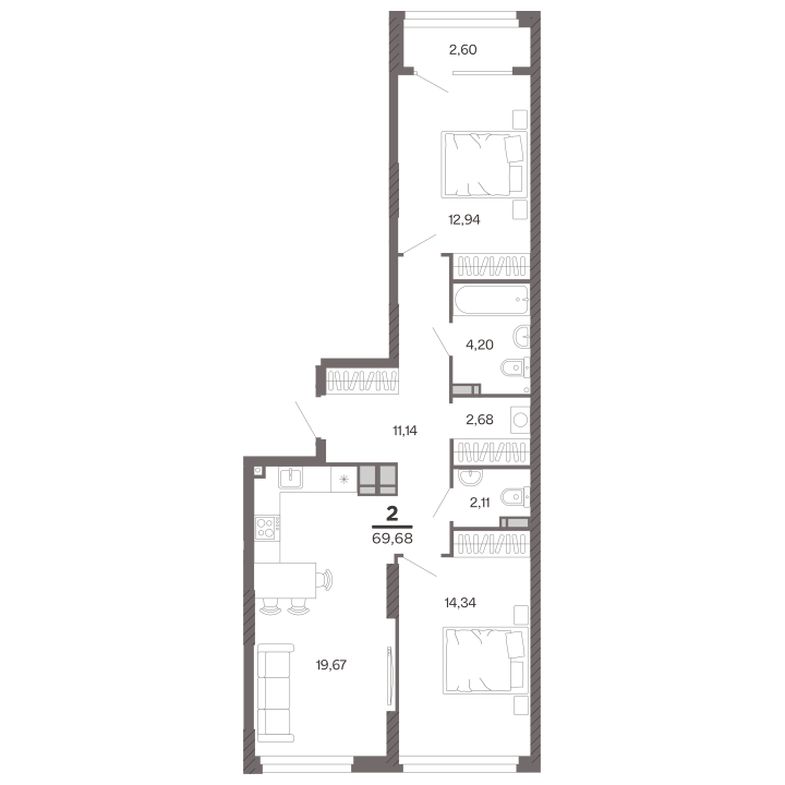 Продажа квартир через счета эскроу. Срок ввода комплекса в эксплуатацию — III квартал 2029 года, передача ключей запланирована до 31 марта 2030 года.