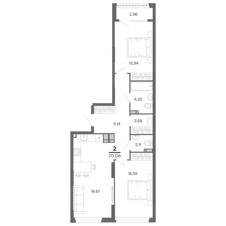 2-комнатная, 70.06 м²